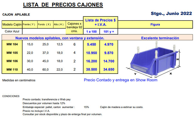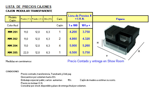 MEDIDAS Y PRECIOS